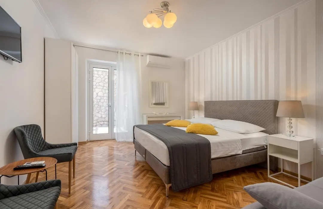 Το διαμέρισμα Banje Beach 85 μ^2, που βρίσκεται στην περιοχή Ploce δίπλα σε Pile Gate, φιλοξενεί έως 6 άτομα. Αυτό το διαμέρισμα διαθέτει 2 υπνοδωμάτια, 1 μπάνια αλλά και πλήρως εξοπλισμένη κουζίνα.